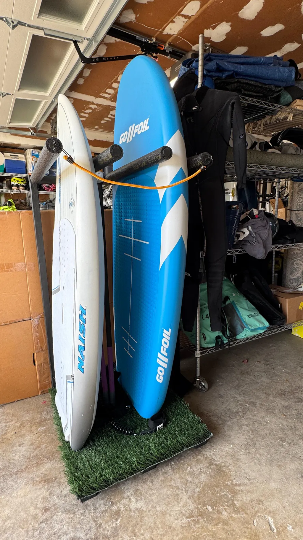 *Vertical freestanding rack perfect for the garage, patio, balcony or surf shop showroom (NO WALL DRILLING).